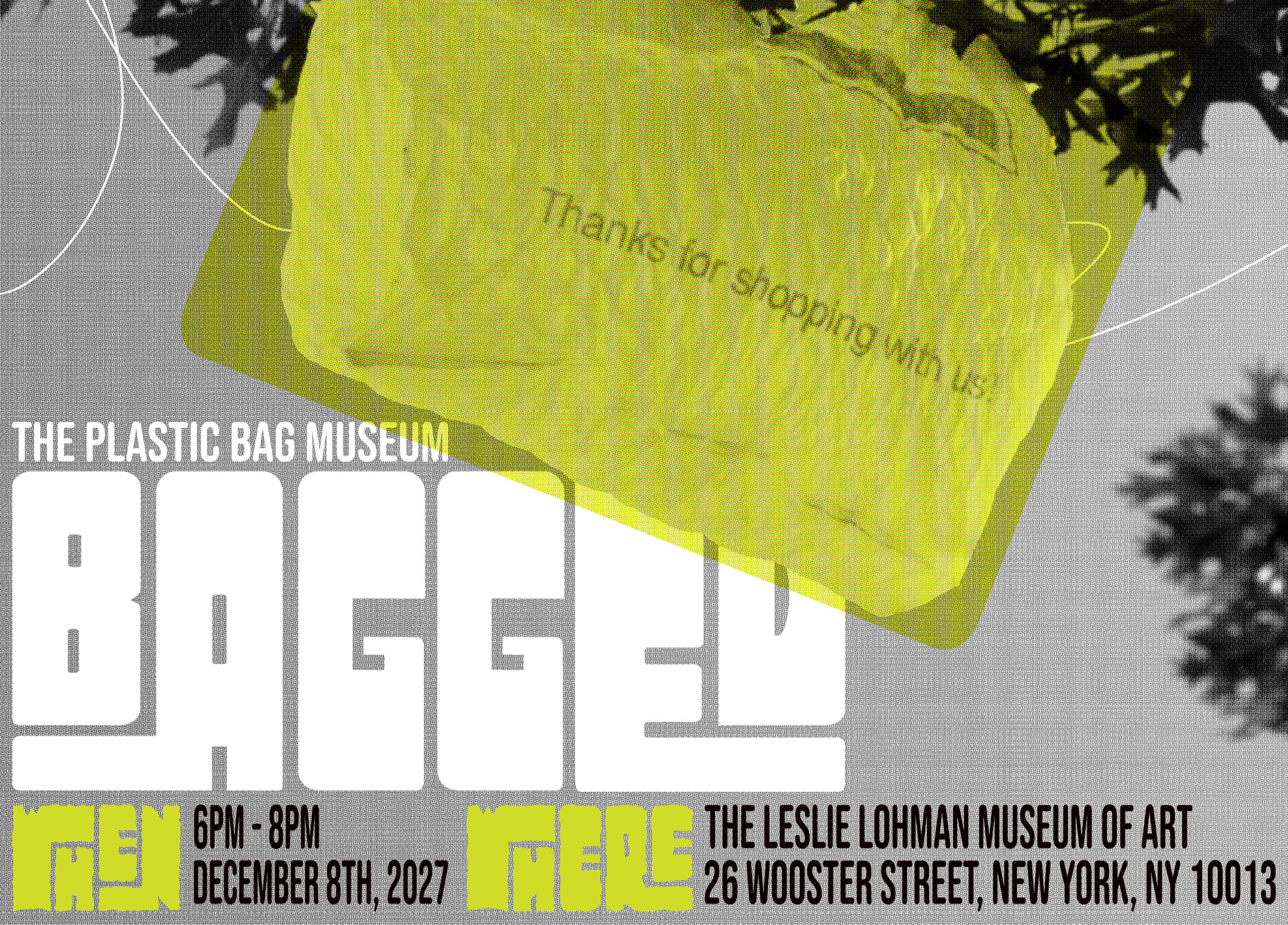 BAGGED: The Plastic Bag Museum is a fictitious branding project focused on bringing attention to the history of design followed through plastic shopping bags. In this project, I wanted to develop my Photoshop skills through editing and playing with layers by pushing elements in the photography forward and back. The pops of color are meant to replicate digital printmaking like riso, and the photos themselves are photoshopped to be more textured and real.